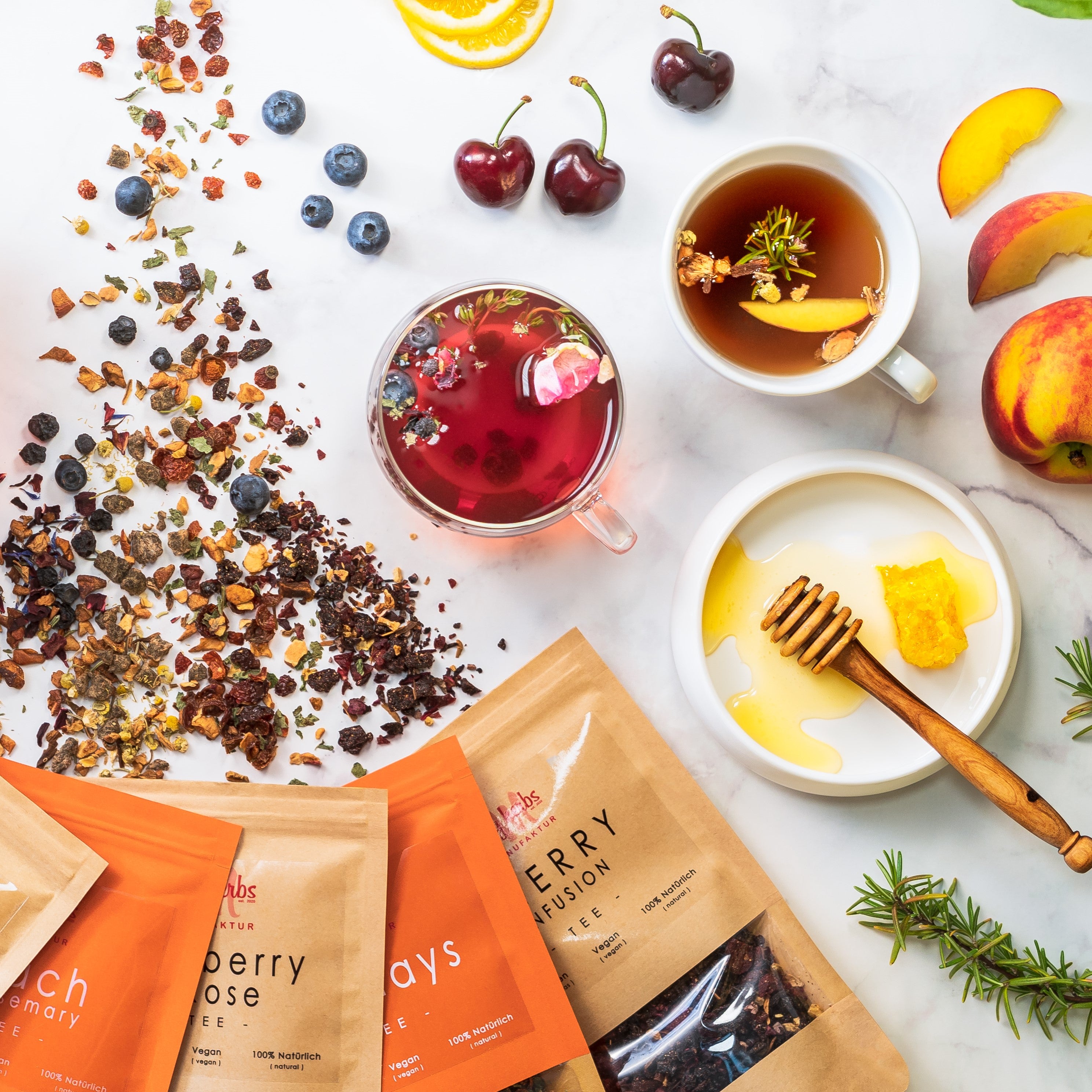 Guter Früchtetee braucht keine Aromastoffe. Unsere köstlichen Früchtetees, werden ausschließlich aus erlesenen Früchten und Kräutern hergestellt und mit liebevoller Handarbeit in unserer österreichischen Manufaktur kreiert. Genieße den Geschmack von puren Früchten, ganz ohne Zusätze und Schnickschnack!